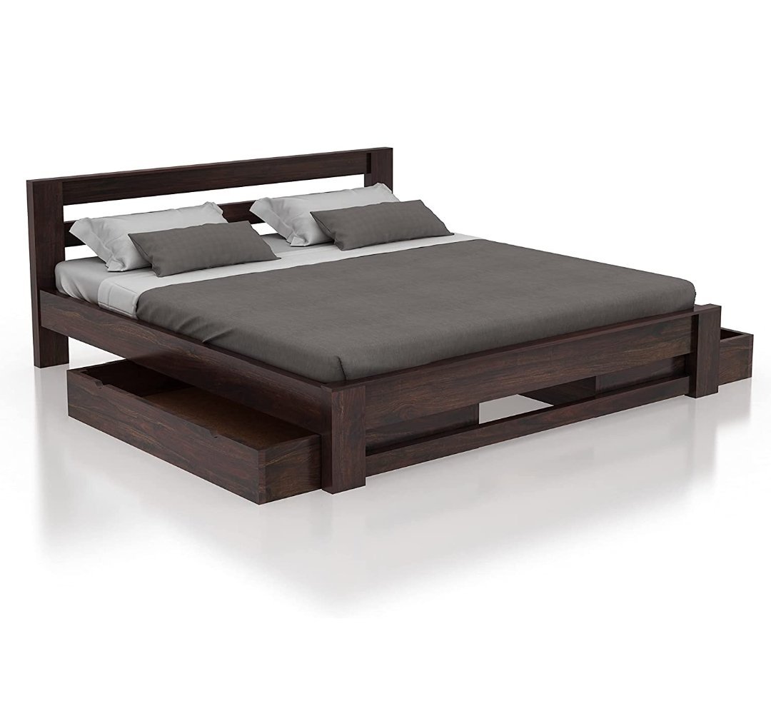 Gunnu Furniture Sheesham Wood Wooden Cot Bed with Two Drawers for Storage