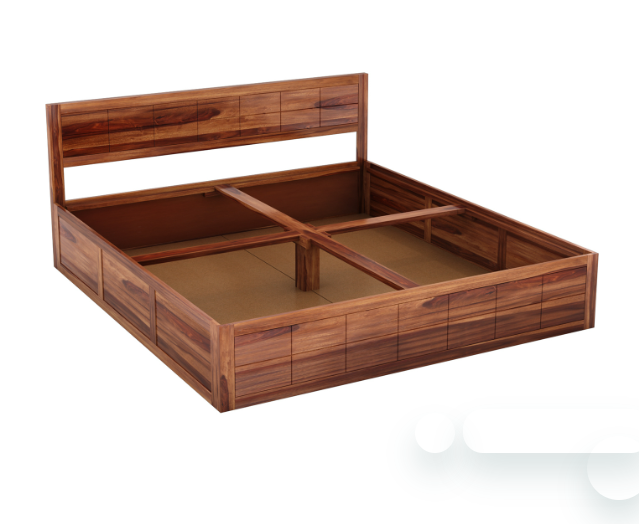 Sheesham Wood Wooden Box Storage Rectangular Slat Bed (King, Queen, Double and Single)