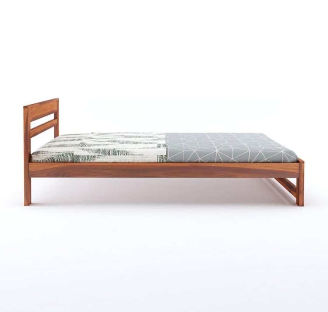 Sheesham Wood Wooden Cot Bed with 2 Horizontal Bar Headboard without Storage for Bedroom, Living Room and Hotel