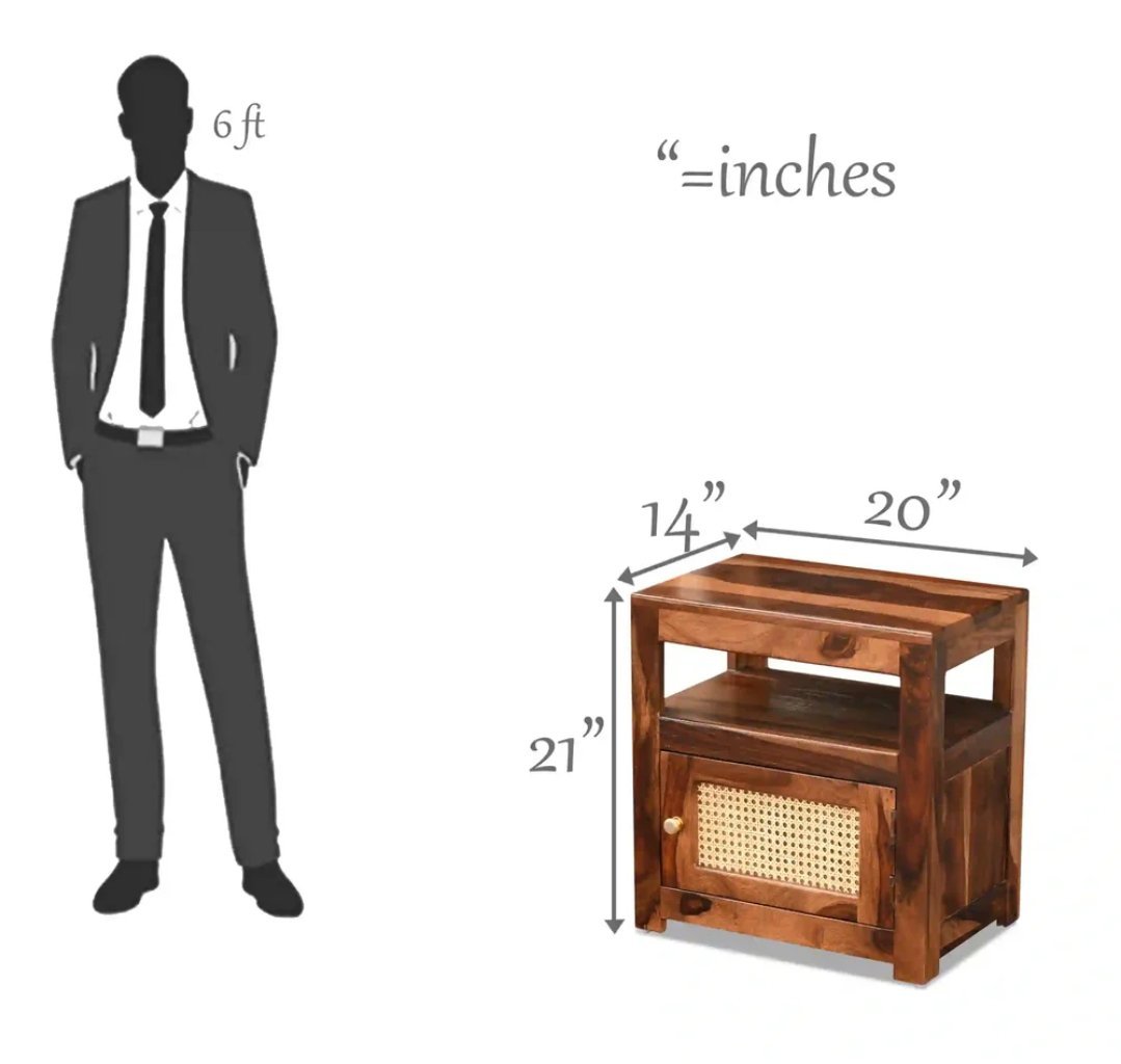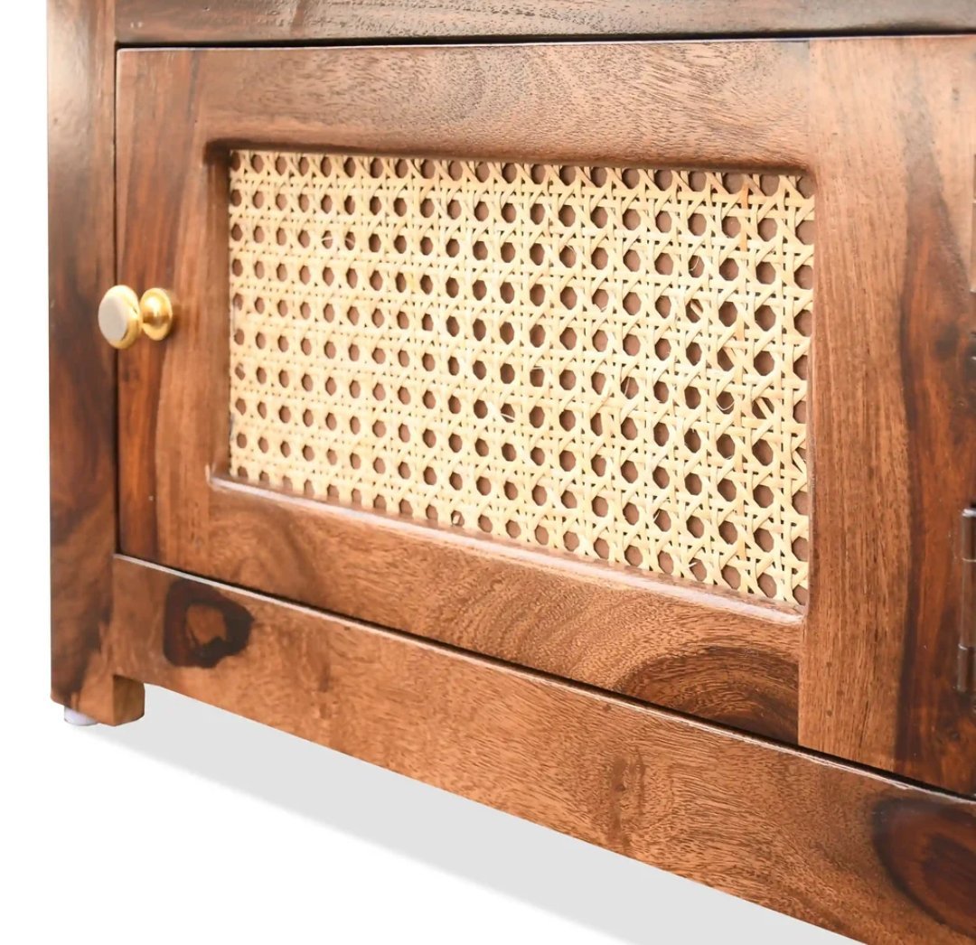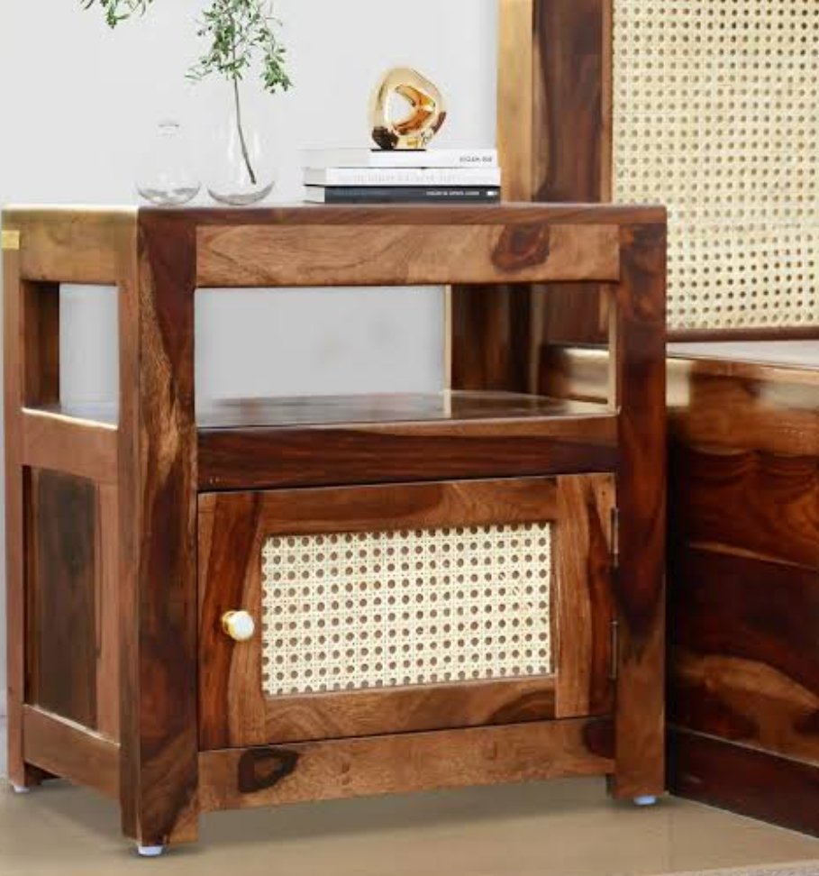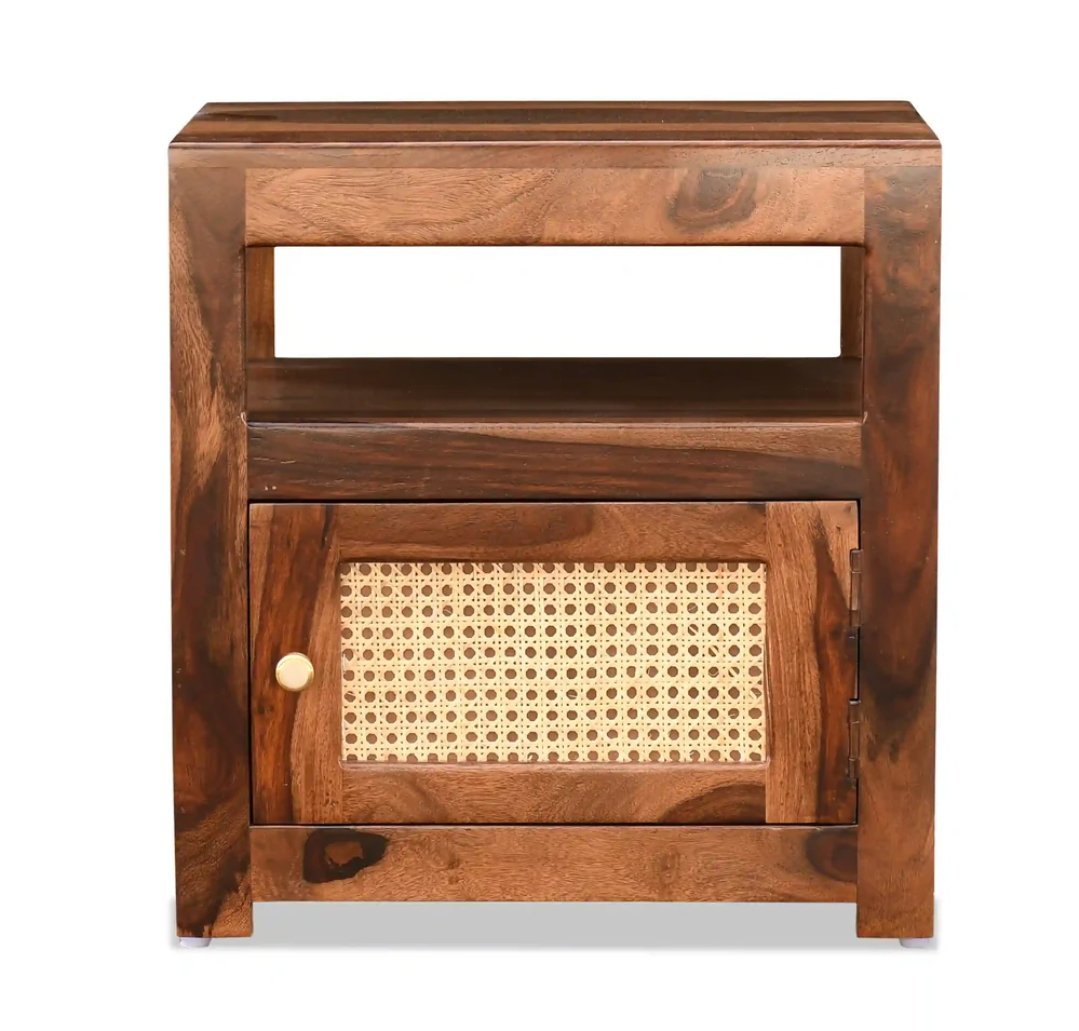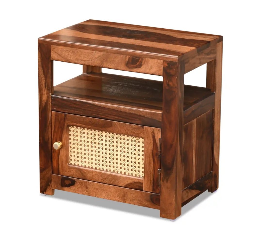 Sheesham Wood Wooden Natural Cane Bed Side Table