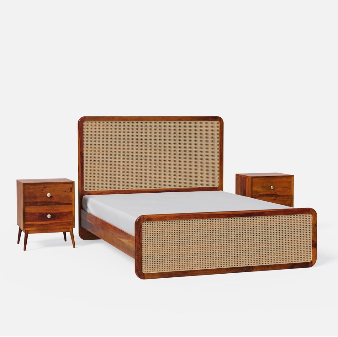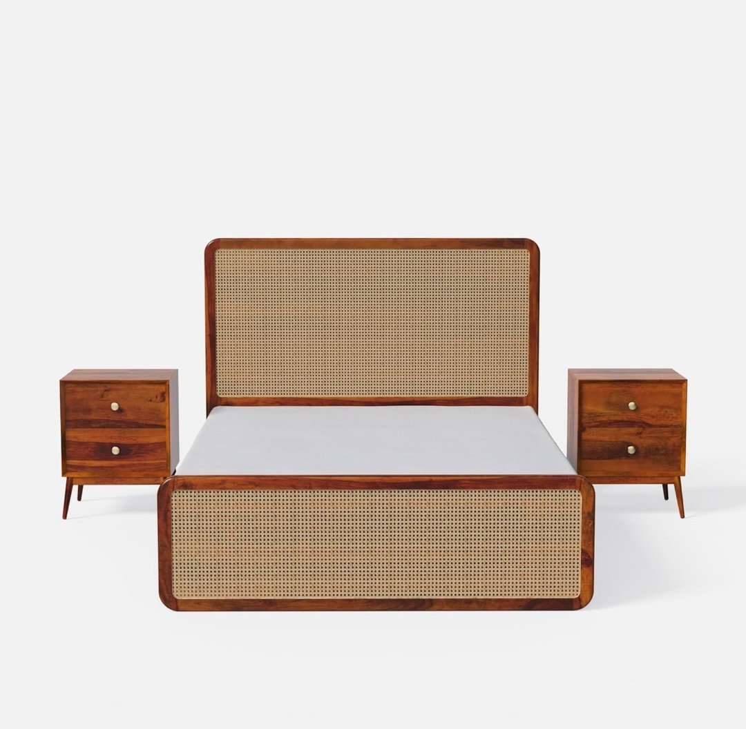 From ₹16,999.00 Inclusive of all taxesGunnu Furniture Sheesham Wood Natural Rattan Cane Bed without Storage for living Room and Bedroom (Natural Finish)